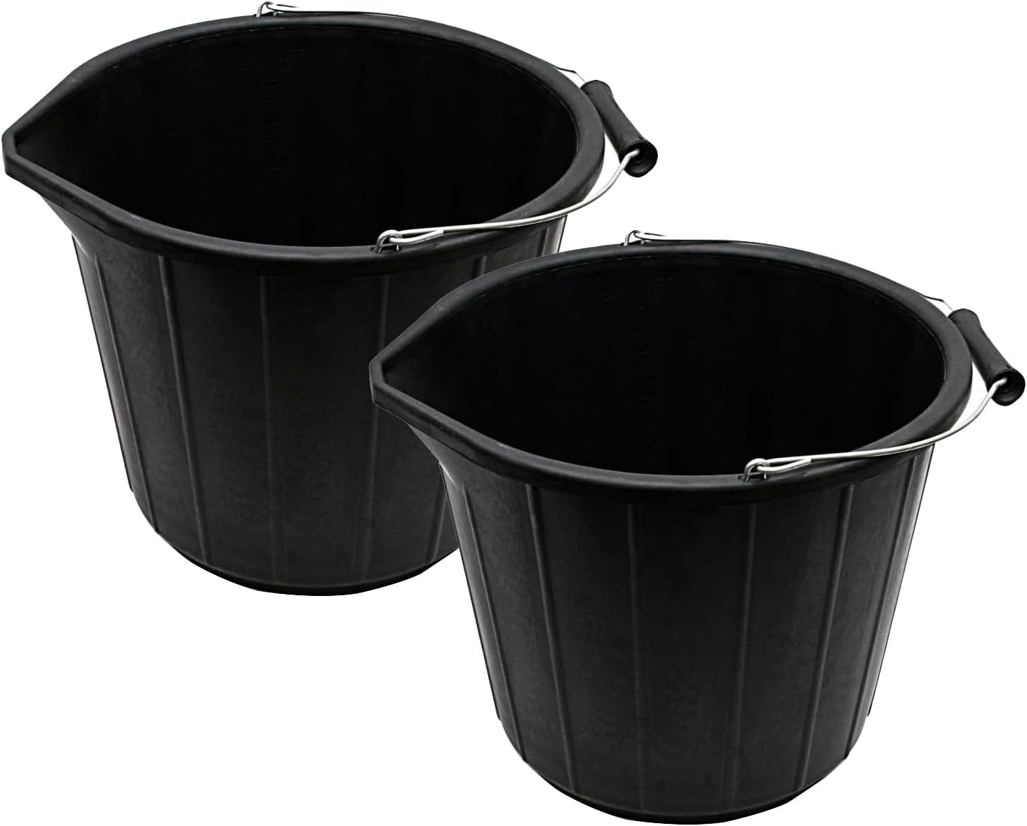 Black Builders Bucket 14L – Heavy Duty Plastic with Metal Handle – 2 Pcs