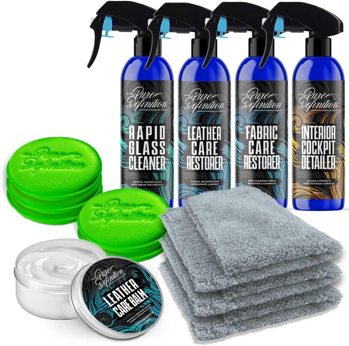 The Pure Definition Car Interior Detailing Kit is designed for car enthusiasts who want to maintain a pristine interior. This comprehensive set effectively cleans and rejuvenates surfaces such as leather, fabric, and plastic, ensuring your vehicle looks its best.