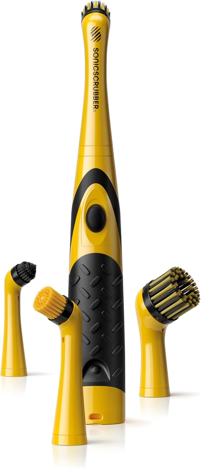 The SONICSCRUBBER Vehicle Detailing Set is a high-power car cleaning brush designed for car, bike, and motorhome enthusiasts. It features interchangeable brush heads, making it easy to reach and clean various surfaces effectively.