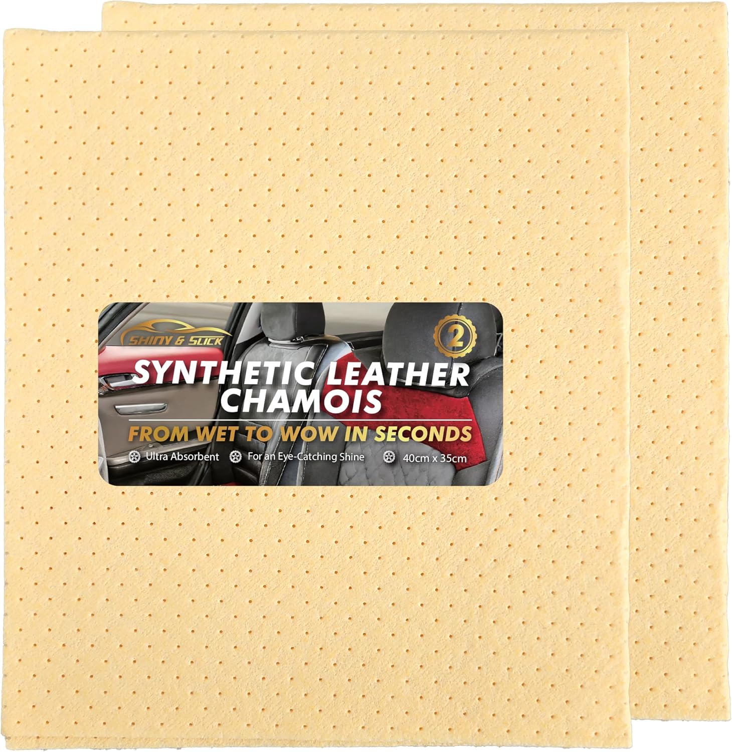 • Pack of 2 high-quality synthetic leather chamois cloths